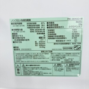 今回は足立区にお住まいの40代女性・会社員の方より、オーヤマ ノンフロン冷凍冷蔵庫 PRC-B092D-W(2025年製)を出張買取にてご依頼いただきました。単身世帯で賃貸マンションにお住まいのお客様からのご相談です。