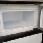 本製品は全定格内容積87L(冷蔵室63L/冷凍室24L)のコンパクト2ドアタイプで、一人暮らしに適したサイズ感が特徴です。庫内を確認したところ、棚板やドアポケットに割れはなく、目立つキズや汚れも見受けられませんでした。冷凍室内には製氷皿も付属しており、使用感は比較的少なめです。外装にも大きなへこみや擦り傷はなく、全体的にきれいな状態でした。動作確認でも冷却機能に問題はありません。