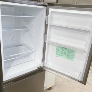 拝見したお品物は全体的に非常にきれいな状態でした。外観のダークシルバーカラー部分に目立つ傷やへこみは見られず、庫内のガラス棚・ドアポケット・冷凍室引き出しも割れや欠けがなく良好なコンディションでした。2025年製と比較的新しく、動作確認でも冷却機能は問題なし。庫内容量は約201Lで、冷蔵室・冷凍室ともにしっかりとした収納力があり、単身世帯から二人暮らしまで対応できる人気モデルです。