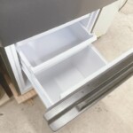 拝見したお品物は全体的に非常にきれいな状態でした。外観のダークシルバーカラー部分に目立つ傷やへこみは見られず、庫内のガラス棚・ドアポケット・冷凍室引き出しも割れや欠けがなく良好なコンディションでした。2025年製と比較的新しく、動作確認でも冷却機能は問題なし。庫内容量は約201Lで、冷蔵室・冷凍室ともにしっかりとした収納力があり、単身世帯から二人暮らしまで対応できる人気モデルです。