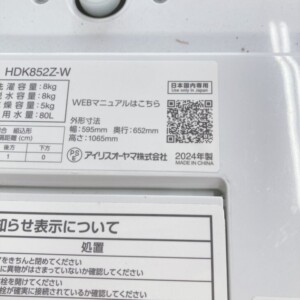 今回は品川区にお住まいの30代女性・会社員・単身・賃貸(マンション)のお客様より、IRIS OHYAMA ドラム式洗濯乾燥機 HDK852Z-W(2024年製)を出張買取にてご依頼いただきました。