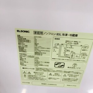 今回は練馬区にお住まいの30代女性・自営業・単身・賃貸(マンション)のお客様より、ELSONIC 家庭用ノンフロン冷凍冷蔵庫 ECH-R85(2024年製)を出張買取にてご依頼いただきました。