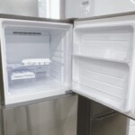 お引き取りしたSJ-D23D-Sは、定格内容積225Lの2ドアタイプで、一人暮らしや二人暮らしに人気のモデルです。外装のステンレス調パネルには目立つへこみや大きな傷は見受けられず、全体的にきれいな状態でした。庫内も棚板やドアポケットの割れはなく、透明ケースや製氷皿も揃っており清潔感のあるコンディションでした。動作確認では冷却機能も問題なく、冷蔵・冷凍ともにしっかりと冷えることを確認しております。