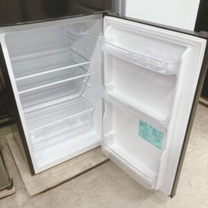 お引き取りしたJR-N130Bは、定格内容積130Lのコンパクトタイプで、一人暮らし向けとして人気のモデルです。外装はブラックカラーで、目立つへこみや大きな傷はなく全体的にきれいな状態でした。庫内も棚板やクリアケースの割れは見受けられず、使用感はあるものの清潔に保たれている印象です。動作確認では冷却機能も正常で、冷蔵室・冷凍室ともに問題なく稼働していました。