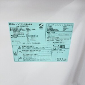 今回は豊島区にお住まいの30代女性・会社員・単身世帯・賃貸(アパート)にお住まいのお客様より、Haier ノンフロン冷凍冷蔵庫 JR-N130B(2022年製)の出張買取をご依頼いただきました。