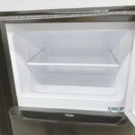 お引き取りしたJR-N130Bは、定格内容積130Lのコンパクトタイプで、一人暮らし向けとして人気のモデルです。外装はブラックカラーで、目立つへこみや大きな傷はなく全体的にきれいな状態でした。庫内も棚板やクリアケースの割れは見受けられず、使用感はあるものの清潔に保たれている印象です。動作確認では冷却機能も正常で、冷蔵室・冷凍室ともに問題なく稼働していました。
