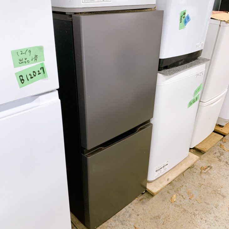 本製品は全定格内容積135L(冷蔵室85L/冷凍室50L)の2ドアタイプで、単身世帯に人気のサイズです。外観はダークシルバー調で大きなへこみはなく、側面にごく小さな擦れが見受けられる程度でした。庫内はガラス棚・野菜ケースともに破損なく揃っており、説明書も保管されていました。冷却動作も確認済みで、製氷トレーも付属。全体として使用感の少ないきれいな状態でした。