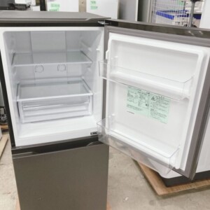 AQR-14P(DS)は全定格内容積135L(冷蔵室85L/冷凍室50L)の2ドアタイプで、一人暮らしに人気のサイズです。外観はダークシルバー系カラーで、正面ドアにわずかな擦れ跡が見受けられましたが、大きなへこみや塗装剥がれはありません。庫内はガラス棚やドアポケット、野菜ケース、製氷皿も揃っており、汚れの付着も少なく清潔な印象です。冷却動作や温度調整ダイヤルの反応も確認でき、機能面に問題はありませんでした。2023年製と新しいモデルのため、中古市場でも需要の高い製品です。