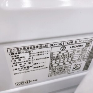 今回は鎌倉市にお住まいの40代夫婦より、HITACHI ドラム式洗濯乾燥機 BD-SG110HL(2022年製)を出張買取にてご依頼いただきました。