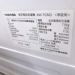 今回は港区麻布十番にお住まいの20代男性(会社員・単身・賃貸マンション)より、TOSHIBA 全自動電気洗濯機 AW-7GM2(2024年製)を出張買取にてご依頼いただきました。