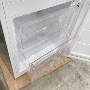 お品物は外観に目立つへこみや大きな傷は見当たらず、扉の表面もきれいな状態でした。庫内のガラス棚やドアポケット、冷凍室のクリアケースも割れや欠けはなく、清掃も行き届いていました。動作確認では冷却機能に問題はなく、異音もなし。2022年製と比較的新しく、使用期間も短いことがうかがえる良好なコンディションでした。