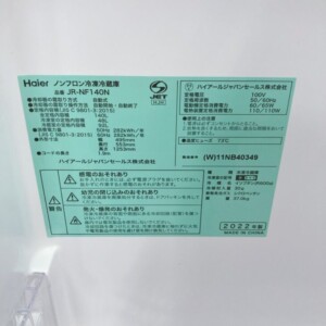 東京都目黒区祐天寺へHaier JR-NF140N 2022年製を出張買取 美品のため高価査定しました