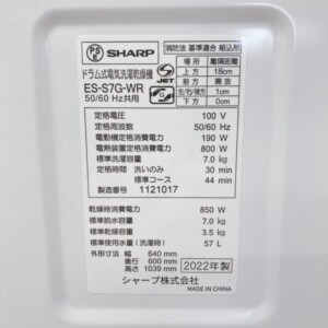 今回は中央区にお住まいの30代男性会社員の方より、SHARP ドラム式電気洗濯乾燥機 ES-S7G-WR(2022年製)を出張買取にてご依頼いただきました。単身で賃貸マンションにお住まいのお客様で、お引っ越しを機に家電の整理をご検討されていました。