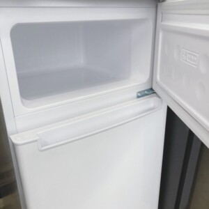 お品物は全定格内容積85L(冷凍室25L/冷蔵室60L)の2ドアタイプで、ワンルームやセカンド冷蔵庫として使いやすいコンパクトモデルです。外観はホワイトカラーで、目立つ擦れやへこみは確認されず、全体的にきれいな状態でした。庫内も非常に清潔で、ガラス棚・ドアポケット・冷凍室内部に割れや欠けはなく、使用感の少ないコンディションでした。動作確認においても冷却機能は正常に作動しており、2024年製という高年式が大きな評価ポイントとなりました。