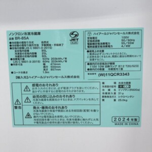 今回は板橋区にお住まいの40代男性・会社員(単身・賃貸マンション)より、ハイアール ノンフロン冷凍冷蔵庫 BR-85A(2024年製)を出張買取にてご依頼いただきました。
