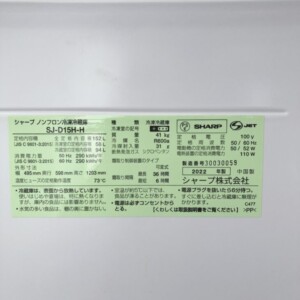 今回は江戸川区にお住まいの40代男性・会社員・単身世帯・賃貸(マンション)のお客様より、SHARP ノンフロン冷凍冷蔵庫 SJ-D15H-H(2022年製)を出張買取にてご依頼いただきました。