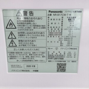 今回は葛飾区にお住まいの30代男性・会社員(単身・賃貸マンション)より、Panasonic ノンフロン冷凍冷蔵庫 NR-B17CW-T(2020年製)を出張買取にてご依頼いただきました。