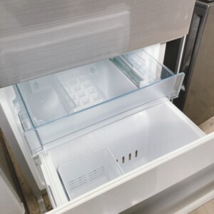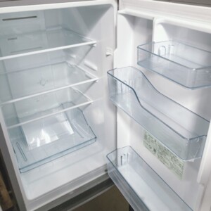 お預かりしたRL-154SAは、154Lクラスの2ドアタイプで単身から二人世帯まで幅広く使用されているモデルです。外観の側面に小さな擦り傷が一部確認できましたが、目立つへこみや大きなダメージはありませんでした。庫内は棚板・ドアポケット・野菜ケースともにきれいな状態で、嫌なにおいもなく清潔感が保たれていました。製氷皿や付属パーツもすべて揃っており、動作確認でも冷却機能に問題はありませんでした。
