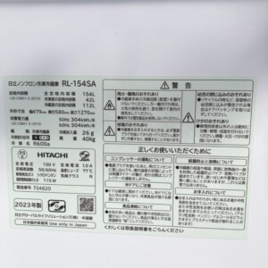今回は港区の分譲マンションにお住まいの40代女性・自営業(夫婦世帯)より、日立 ノンフロン冷凍冷蔵庫 RL-154SA(2023年製)の出張買取をご依頼いただきました。