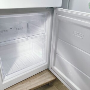外観はホワイトボディに目立つ傷やへこみもなく、全体的にきれいな印象でした。庫内も使用感が少なく、棚板やドアポケットの割れ・欠品もありません。冷却機能も正常に作動しており、異音も見受けられませんでした。さらに取扱説明書などの付属品も完備しており、再販時の評価が高い状態でした。