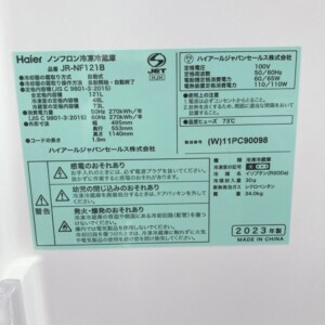 今回は東京都町田市にお住まいの20代女性のお客様より、Haier ノンフロン冷凍冷蔵庫 JR-NF121B(2023年製)を出張買取にてご依頼いただきました。単身向けとして人気の121Lモデルで、状態も非常に良好なお品物でした。