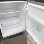 外観正面に使用による細かな擦れ跡がいくつか確認できましたが、目立つへこみや大きな塗装剥がれはありませんでした。庫内はガラス棚やドアポケット、冷凍室の製氷皿も揃っており、割れや欠損はなし。冷蔵・冷凍ともにしっかり冷却されることを確認しており、動作面に問題はありません。2023年製と年式も新しく、全体として再販に適した状態でした。