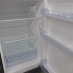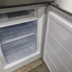 外観はシルバー仕様で、大きなへこみや塗装剥がれは見受けられませんでした。正面扉に使用に伴う軽微な擦れはありますが、目立つダメージではありません。庫内はガラス棚・野菜ケース・ドアポケット・冷凍室引き出しが揃っており、割れや欠損はありません。冷却機能も問題なく、冷蔵・冷凍ともに正常動作を確認しました。2023年製と比較的新しい年式である点も評価につながっています。