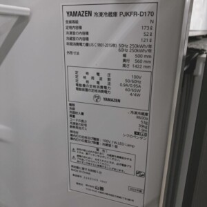 東京都台東区へ出張買取 YAMAZEN PJKFR-D170 2022年製 外観に細かな擦れありのため適正価格で査定しました