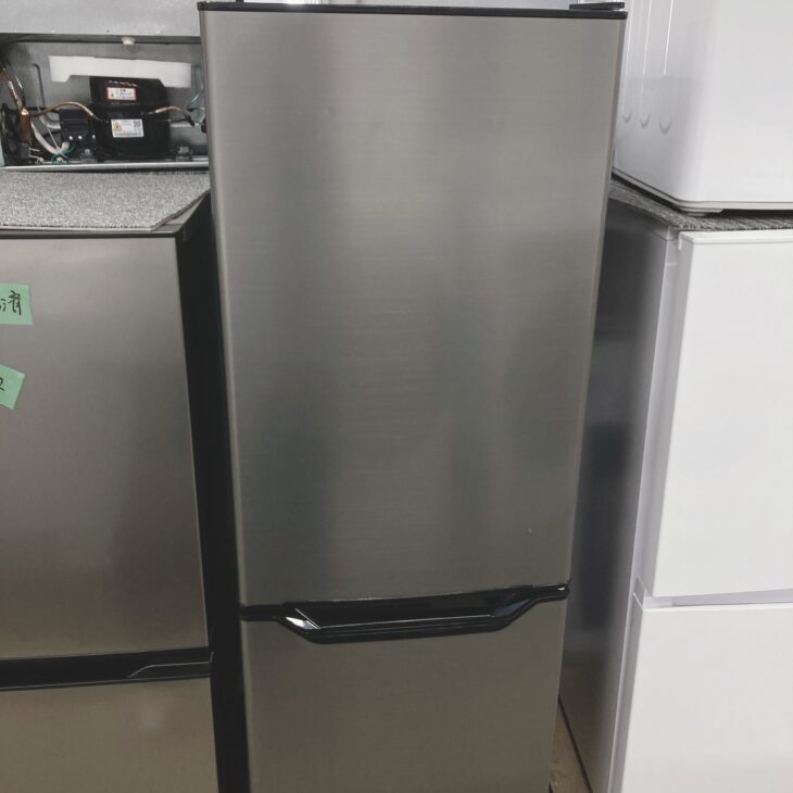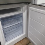 外観はシルバーカラーで、正面パネルに使用に伴う細かな擦れが確認できましたが、大きなへこみや塗装剥がれはありませんでした。庫内はガラス棚・ドアポケット・野菜ケース・冷凍室の引き出しがすべて揃っており、割れやヒビは見られません。冷蔵・冷凍ともにしっかりと冷却されており、動作も問題ありませんでした。2022年製と比較的新しい年式である点も査定評価につながっています。