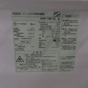 東京都荒川区へ出張買取 AQUA AQR-13M(S) 2022年製 外観に軽微な擦れありのため適正価格で査定しました