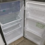 外観はステンレス調シルバーのため正面に細かな擦れや薄いキズが見受けられましたが、大きなへこみや目立つ打痕はありませんでした。使用期間が長いこともあり庫内に若干の使用感はあるものの、棚板やクリアケースの割れもなく、ドアポケットも破損はありません。冷却機能も確認し、冷蔵・冷凍ともに正常動作を確認済みです。製氷トレーや取扱説明書も付属しており、全体として再販可能な状態でした。