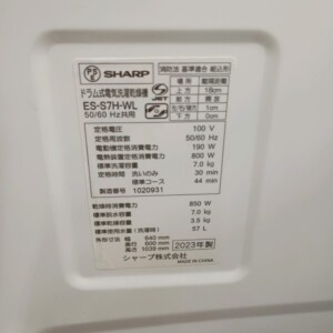 今回は東村山市にお住まいの30代女性・会社員・単身・賃貸マンションのお客様より、SHARP ドラム式洗濯乾燥機 ES-S7H-WL(2023年製)を出張買取にてご依頼いただきました。