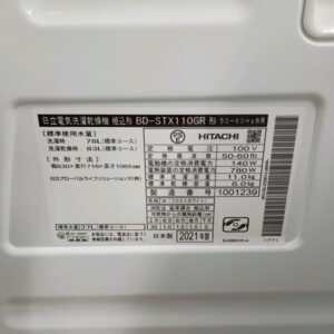 今回は青梅市にお住まいの50代ご夫婦・持ち家(一戸建て)のお客様より、日立 ドラム式洗濯乾燥機 BD-STX110GR(2021年製)の出張買取をご依頼いただきました。