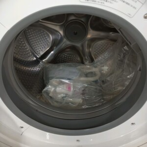 外観は目立つ傷や変色も少なく、全体的にきれいな状態でした。操作パネル周辺の使用感も軽微で、ドアパッキンの劣化や汚れも見られません。内部ドラムはステンレス槽の光沢が保たれ、カビや洗剤残りの付着もなく清潔な状態でした。給水ホースなど付属品も揃っており、動作確認でも洗浄・脱水・乾燥すべて正常に稼働しました。