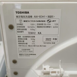 今回は武蔵村山市にお住まいの50代男性・自営業・夫婦世帯のお客様より、東芝 全自動洗濯機 AW-9DH1(2022年製)の出張買取をご依頼いただきました。