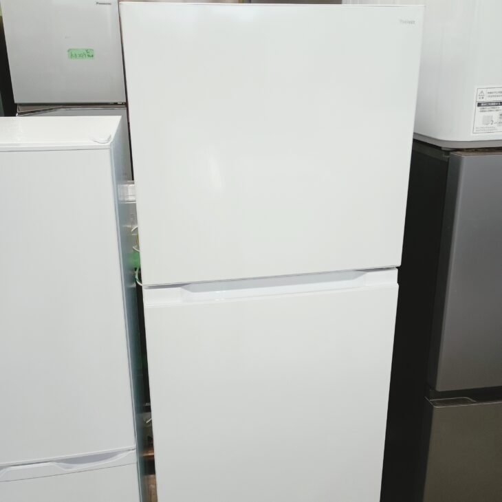 拝見した冷蔵庫は外観に目立つ傷やへこみが見られず、全体的に清潔感のある状態でした。庫内のガラス棚やドアポケット、野菜ケースも透明感が保たれており、使用に伴う汚れの蓄積は少なめです。冷却機能も正常に作動しており、冷蔵・冷凍ともに安定した温度保持が確認できました。製氷トレーも付属しており、日常使用に支障のない良好なコンディションでした。