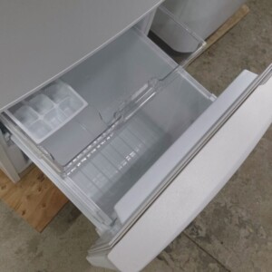 拝見した冷蔵庫は外観に目立つ傷やへこみが見られず、清潔感のある良好な状態でした。庫内のガラス棚やドアポケット、野菜ケースは透明感があり、汚れの付着も少なく衛生的です。冷凍室の引き出しや製氷トレーも揃っており、冷却動作も正常に確認できました。全体的に使用感は少なく、日常使用に支障のないコンディションでした。