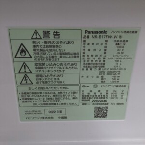 今回は葛飾区にお住まいの30代男性(会社員・単身・賃貸マンション)より、Panasonic ノンフロン冷凍冷蔵庫 NR-B17FW-W(2022年製)を出張買取にてご依頼いただきました。