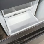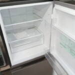 拝見した冷蔵庫は外観に目立つ傷やへこみが見られず、全体的に非常にきれいな状態でした。庫内のガラス棚やドアポケットは透明感が保たれ、汚れやにおいの付着もほとんどありません。野菜ケースや冷凍室トレーも揃っており、動作確認でも冷却性能に問題は見られませんでした。付属の取扱説明書も保管されており、使用期間の短さがうかがえるコンディションでした。