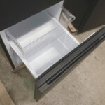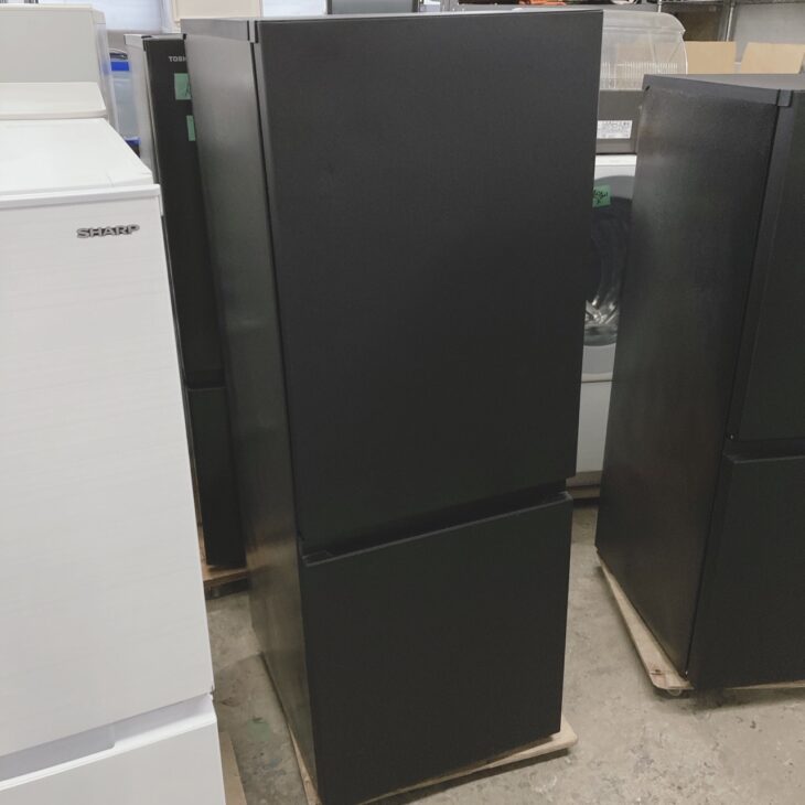 お品物は容量180L(冷蔵室120L/冷凍室60L)の2ドアタイプで、カラーは落ち着いたブラック。外観には目立つ傷やへこみはなく、庫内も棚板・ドアポケットともにきれいな状態でした。冷却動作も問題なく、異音や冷えムラも確認されませんでした。使用期間が短かったこともあり、全体的に清潔感のあるコンディションでした。