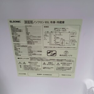東京都三鷹市へ出張買取 ELSONIC 冷凍冷蔵庫 ECH-R85 2024年製 状態良好のため適正価格で査定しました