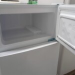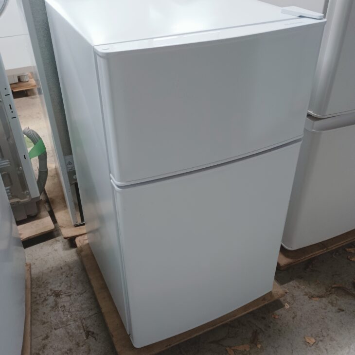本製品は容量85Lのコンパクト2ドアタイプで、一人暮らしやセカンド冷蔵庫として需要の高いモデルです。外観には目立つ傷やへこみは見られず、使用に伴う軽微な擦れ程度で全体的にきれいな状態でした。冷凍室には製氷トレーが付属し、冷蔵室の棚やドアポケットも透明感が保たれており、庫内は清潔感のある状態です。動作確認では冷却機能に問題はなく、庫内灯も正常に点灯しました。