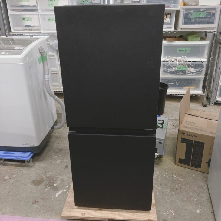 本製品はコンパクトながら使い勝手に優れた2ドアタイプの冷凍冷蔵庫です。外観はマットブラックの落ち着いたデザインで、目立つ傷やへこみは見受けられず良好な状態でした。庫内は棚板やドアポケットに透明感があり、食品臭や変色もなく清潔な印象です。冷凍室の引き出しや製氷トレーも揃っており、動作確認において冷却性能も問題ありませんでした。使用期間が短く、全体的にきれいな状態が保たれている点が評価ポイントとなりました。