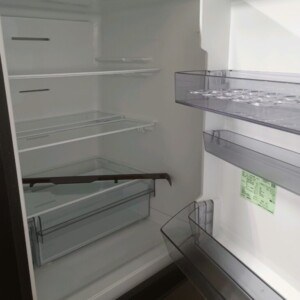 お引き取りした冷蔵庫は外観に目立つ凹みや大きな傷はなく、日常使用による軽微な擦れが見られる程度で全体的に良好な状態でした。庫内は清掃が行き届いており、ガラス棚やドアポケットの破損もなく清潔感があります。野菜室のクリアケースも割れや欠けがなく、冷却機能・製氷機能ともに正常に動作していました。パッキンの劣化や異臭もなく、再販に適したコンディションでした。