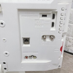 お引き取りしたテレビは、画面に目立つ傷や割れは見られず、映像表示・音声ともに正常に動作していました。白色フレーム特有の変色も少なく、背面やスタンド部にも大きなダメージはありません。通気口周辺に軽微なほこりの付着は見られましたが、全体的に丁寧に使用されていた印象です。スタンドは純正品が付属し、LAN端子やHDMI入力などの端子類も正常に使用できる状態でした。