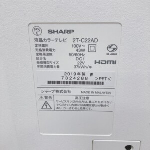 今回は世田谷区成城にお住まいの30代男性・会社員・単身世帯・賃貸(マンション)のお客様より、SHARP AQUOS 液晶テレビ 2T-C22AD(2019年製)を出張買取にてご依頼いただきました。