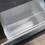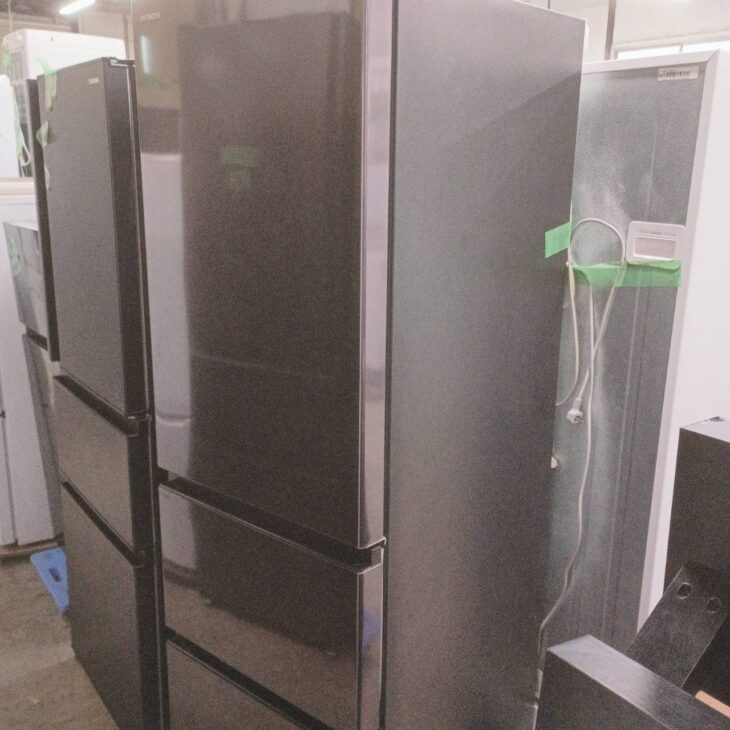お引き取りした冷蔵庫は、外装に目立つ凹みや深い傷は見られず、光沢面に軽微な使用擦れがある程度で全体的に良好な状態でした。庫内は棚板やドアポケットの透明感が保たれており、食品臭の付着もなく清潔な状態です。野菜室ケースの割れや欠けもなく、冷却動作・庫内灯ともに正常でした。2022年製と比較的新しく、丁寧に使用されていたことがうかがえるコンディションでした。