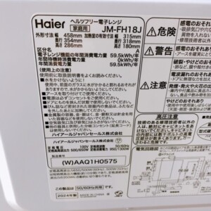 今回は国立市にお住まいの30代男性・会社員(単身世帯/賃貸マンション)のお客様より、Haier ヘルツフリー電子レンジ JM-FH18J(2024年製)を出張買取にてご依頼いただきました。