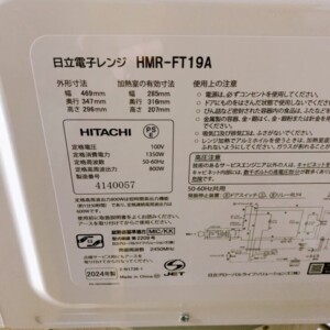 今回はあきる野市にお住まいの40代女性・主婦(親子世帯/持ち家一戸建て)のお客様より、日立 電子レンジ HMR-FT19A(2024年製)を出張買取にてご依頼いただきました。