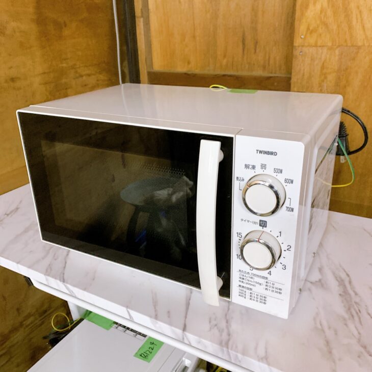 ツインバード製電子レンジはシンプル構造で扱いやすく、単身世帯やセカンド家電として一定の需要があります。本製品は2018年製のため最新モデルではありませんが、動作良好で庫内状態が比較的きれいな点、ターンテーブルや付属品が揃っている点、コンパクト設計で再販需要が見込める点を評価しました。また、再販前の清掃コストが抑えられることも査定額に反映しています。これらを総合的に判断し、今回は500円での査定価格をご提示いたしました。